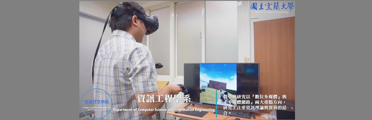 國立宜蘭大學資訊工程學系教學與研究以「數位多媒體」與「多媒體網路」兩大重點方向邁進。師資專業領域包含:通訊網路、多媒體系統、影像處理、嵌入式系統、虛擬實境、電腦視覺、雲端計算、數位學習、物聯網、量子計算等相關基礎及前瞻的研究。目前在大學部規劃【行動網路與資安學分學程】及【多媒體與數位科技學分學程】,提供學生具體的學習目標及優異的學習環境。