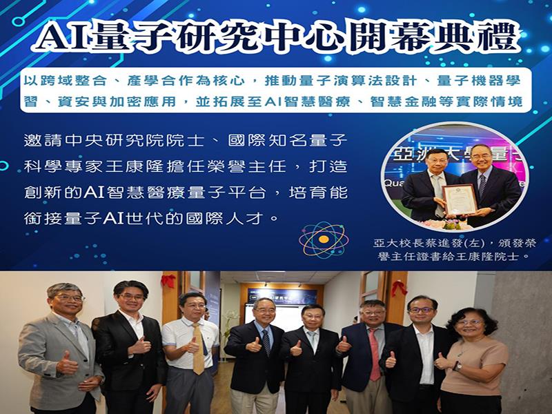 情報 亞洲大學量子AI研究中心揭幕,打造創新AI智慧醫療量子平台