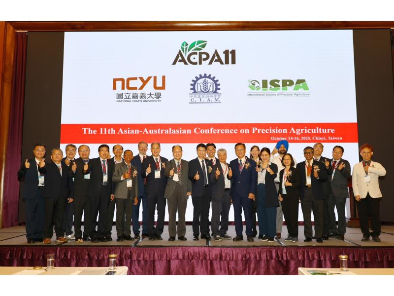 2025年第11屆亞洲-澳大利亞精準農業會議(2025 ACPA11, Asian-Australasian Conference on Precision Agriculture,ACPA)於10月14日至16日在嘉義市耐斯王子大飯店盛大舉辦。今年大會由中華農業機械學會(Chinese Institute of Agricultural Machinery, C.I.A.M.)爭取到主辦權,委由嘉義大學生物機電工程學系承辦,吸引來自16個國家及地區的專家學者與產官研代表齊聚嘉義。與會國家包括韓國、日本、中國、孟加拉、越南、印尼、馬來西亞、德國、義大利、美國、新加坡、紐西蘭、印度、盧安達、阿富汗及臺灣等,展現精準農業領域的高度國際參與。 「亞洲-澳大利亞精準農業會議」(ACPA)2005年由10個國家共同發起,旨在推動與交流精準農業(Precision Agriculture)之最新發展成果,每兩年舉辦一次,首屆會議於日本豐橋市(Toyohashi, Japan)舉行,至今已歷十屆,為亞太地區最具影響力的精準農業學術盛會之一。 該日會議主題涵蓋智慧感測技術、無人機應用、作物生理資訊監測、AI數據分析、農業機械自動化及環境永續管理等前瞻議題,共發表學術論文172篇,包括專題演講4篇、邀請演講8篇、口頭報告103篇及海報展示57篇,內容豐富、討論熱烈。 會議由嘉大副校長兼中華農業機械學會洪滉祐理事長與臺灣大學陳世銘名譽教授共同揭開序幕,農業部科技司陳瑞榮副司長及嘉大林翰謙校長與會致詞,展現臺灣在智慧農業與精準技術領域的堅實實力與國際連結。大會邀請多位國際知名學者發表專題演講,分享全球智慧農業的最新趨勢、數位科技應用與永續農業實踐案例,精彩可期。 嘉大生物機電工程學系邱永川主任表示,本次承辦ACPA11會議,不僅展現臺灣在精準農業研究與技術創新上的豐碩成果,更為亞太區農業科技交流與合作搭建重要橋樑。期盼藉由此國際平台,推動農業數位轉型與永續發展,打造更高效率與環境友善的智慧農業新生態。