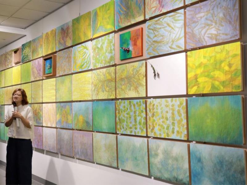 嘉義大學圖書資訊處2025年藝文系列展第四場「一花一世界、一葉一菩提:曾雅苑創作個展」,自10月7日起至11月10日在蘭潭校區圖書資訊館一樓展覽廳展出。10月7日舉行開幕典禮,現場冠蓋雲集,新港文教基金會董事長陳永華先生、林國治藝術教育基金會董事長暨林國治美術館館長林虹昱女士等多位藝文界人士皆蒞臨祝賀,共同見證嘉大校園藝文能量的綻放。 本次展覽展出曾雅苑老師自1997年至2025年間的多幅代表作,以油畫與複合媒材為創作主軸。曾老師留學紐約後長年探索繪畫與媒材實驗的可能,試圖以藝術串聯內在思緒與外在感知。 展出作品分為三大主題: 「文字書寫繪畫」系列:融合文字與圖像,挑戰「觀看」與「閱讀」的界線。 「兩年」系列:以蘭潭校區與嘉義街頭常見植物葉片為素材,透過「植物移印」手法將自然化為藝術,展現生命與時間的印記; 「視鏡與意境」系列:以圖資處為靈感,結合書籍、腦部MRI輸出影像、植物蠟木標本及明信片等媒材,創作出思考「記憶、閱讀與存在」的裝置藝術。 曾雅苑老師表示,在創作過程中,嘉大學生分享的植物專業知識深深啟發了她,使作品兼具藝術深度與科學感知。 嘉大黃月純副校長表示,環境教育的潛移默化是美感教育成功的關鍵,取材自校園的展覽是最自然的教育場域。視覺藝術學系榮譽教授劉豐榮則分享,觀賞作品能讓學生在美感中獲得安定與專注的力量。新港文教基金會董事長陳永華先生亦表示,看到曾老師多年來的創作構想於嘉大實現,令人感動。 此次展覽以藝術回應土地與生命,讓觀者在植物的葉脈、畫布的筆觸之間,體悟自然與人文的共鳴。展期自10月7日至11月10日,歡迎校內外師生與社會大眾蒞臨參觀,一同感受嘉大校園的藝術芬芳與哲思之美。 展覽資訊: 日期:10月7日(二)至11月10日(一) 地點:嘉義大學蘭潭校區圖書資訊館一樓展覽廳 藝 術 家:曾雅苑 主辦單位:嘉義大學圖書館
