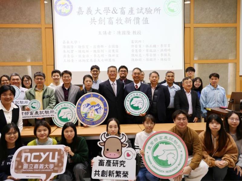 嘉義大學與農業部畜產試驗所長期維持緊密的合作關係,2022年4月28日正式簽署合作備忘錄。在嘉大林翰謙校長與畜試所黃振芳所長共同擘劃下,雙方於2024年啟動「永續創生聯合研究計畫」,以整合學術研發能量與實務應用資源,補強彼此的研發缺口。這項長期布局正迎來開花結果時刻,今(30)日雙方於嘉大動物科學系視聽教室舉辦成果發表會,發表具備商業化潛力的革命性飼料添加物技術,共同見證臺灣畜牧產業邁向永續發展的新里程碑。 林翰謙校長表示,嘉大與畜試所同為我國農業科技發展重鎮,透過「永續創生聯合研究計畫」的實質運作,雙方團隊成功將嘉大的微生物發酵專長,與畜試所深厚的動物營養實務經驗完美結合。本次發表的成果由嘉大農學院動科系陳國隆教授團隊與畜試所許晉賓研究員團隊共同執行,不僅展現跨域合作的加乘效益,更為解決當前畜牧業痛點提出具體對策。 畜試所所長黃振芳表示,本次成果核心研發來自嘉大陳國隆教授團隊在微生物發酵與飼料創新上的長期投入,而畜試所負責透過完整的動物試驗,驗證技術在實際生產環境中的可行性與效益。相關研究涵蓋母豬、肉豬、蛋雞、肉雞及哺乳仔羊,結果顯示發酵產物可改善動物健康、提升生產效率,並具備取代促進生產抗生素與商品化應用潛力。畜試所透過科學數據替產業把關,確保創新技術能安全、有效地銜接畜牧現場,與嘉大共同持續推動我國永續畜產發展。 本次發表的技術成果核心,在於透過微生物發酵技術,解決環保問題並大幅降低飼養成本,其三大核心技術亮點如下:(一)羽毛與肉骨粉「高值化」: 團隊利用化學、物理及自行篩選益生菌發酵處理技術,結合自行篩選的特選益生菌進行發酵,成功將傳統難以被單胃動物消化的羽毛與肉骨粉,轉化為高吸收率的優質蛋白,可在一天內將羽毛降解63%,為目前文獻上最高降解率。經試驗證實,此產物可顯著促進豬、雞、鵝及仔羊生長,效果足以完全取代昂貴的進口魚粉,大幅提升生產性能及經濟效益。(二)取代促生長抗生素及優質魚粉:利用特殊篩選菌種及農業副產物,1天內可生產抗菌脂?-表面素達3%,具有抑制沙門氏菌、大腸桿菌及調節腸道生理之功能,可作為替代傳統促生產抗生素(AGP)及優質魚粉的天然資材。(三)全程素食、無抗生素飼糧應用:利用國產農業副產物-纖維原料(大豆殼、麩皮、收成後菇包產物及大花咸豐草等)與大豆粕為基質,經由微生物發酵之產物,可在白肉雞及土雞(文昌雞)飼糧中全程無使用動物性原料及促進生產抗生素,較市售商用飼料佳之生產性能及經濟效益,為一革命性突破。團隊成功開發出可應用於雞隻飼糧的「全素食無抗生素配方」,根據合作業者指出,成果令人滿意。讓消費者能享用更安心的畜產品,達到在地生產、節能減碳、永續農業目標。 此三種技術已具備量產驗證,其技術成熟度與創新性備受產學界與國家級獎項肯定。目前已連續獲得2024年「國家新創獎」、2025年「國家新創精進獎」、2024年「發光‧發亮農業生技創新創業競賽」亞軍及2025年「發光‧發亮農業生技創新創業競賽」季軍。更值得一提的是,該技術以「減少碳足跡」為題,榮獲2025年國科會「未來科技獎」,是唯一農業類獎項,顯示其在技術創新與產業化潛力上皆具指標地位。