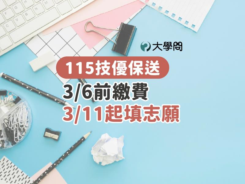 技職考情 【115技優保送】3/6前繳費 3/9起填志願