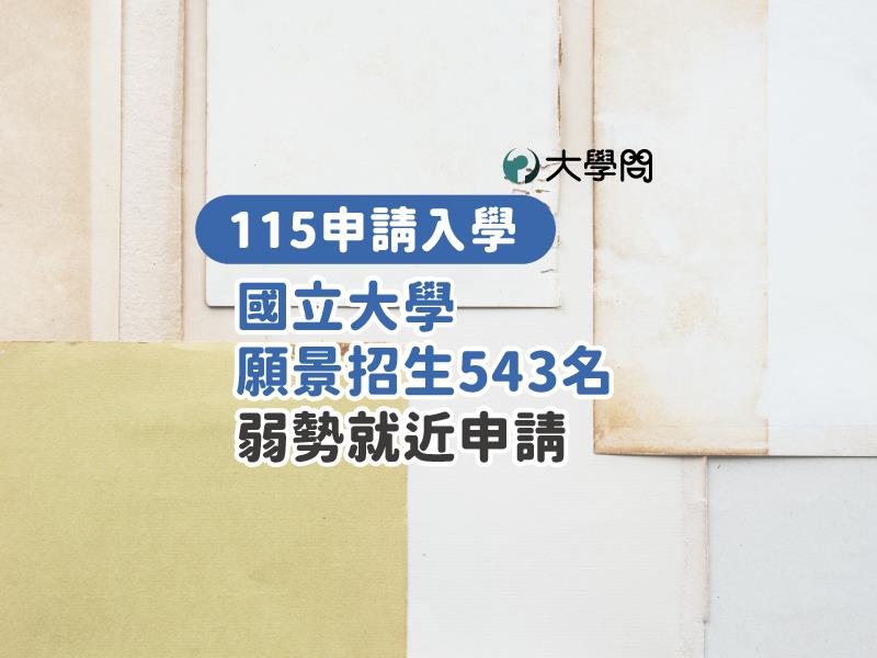 大學考情 【115申請入學】國立大學願景招生543名 弱勢就近申請
