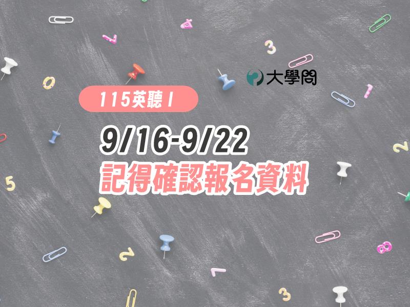 大學考情 【115英聽 I】9/16-9/22記得確認報名資料