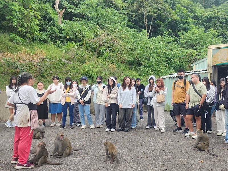 為深化學生對「生態觀光與遊憩衝擊」議題的理解,南華大學「永續環境與地方創生」跨領域學程學生在旅遊管理學系副教授許澤宇帶領下,於日前至台南市南化區烏山獼猴區,展開一場兼具教育意義與省思價值的戶外教學活動。學生透過實地觀察與討論,探究野生動物餵食行為在生態、文化與教育層面的多重影響,並以「環境教育」與「生命教育」為主軸,重新思考人與自然的共存關係。