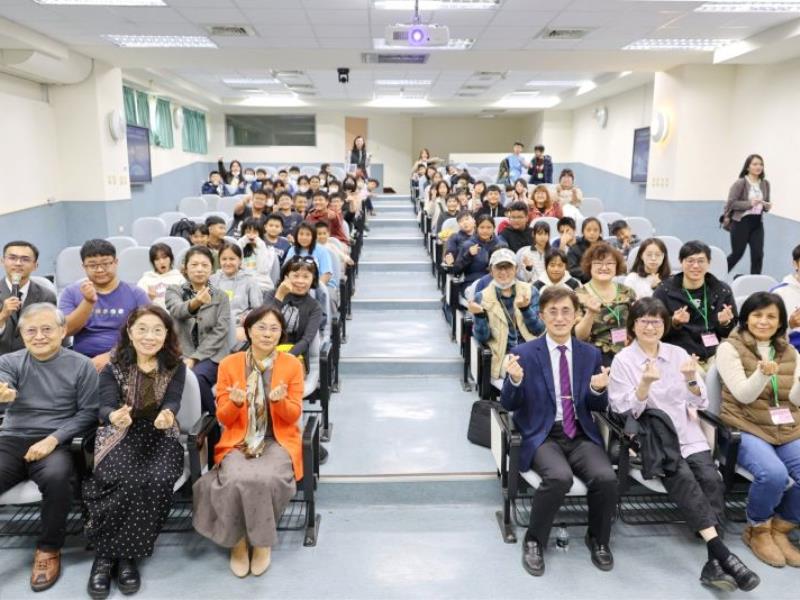 圖2:嘉大舉辦「認識鄒族天生科學家」營隊,生命科學院吳思敬院長(第一排右3)等貴賓與營隊學生合影。