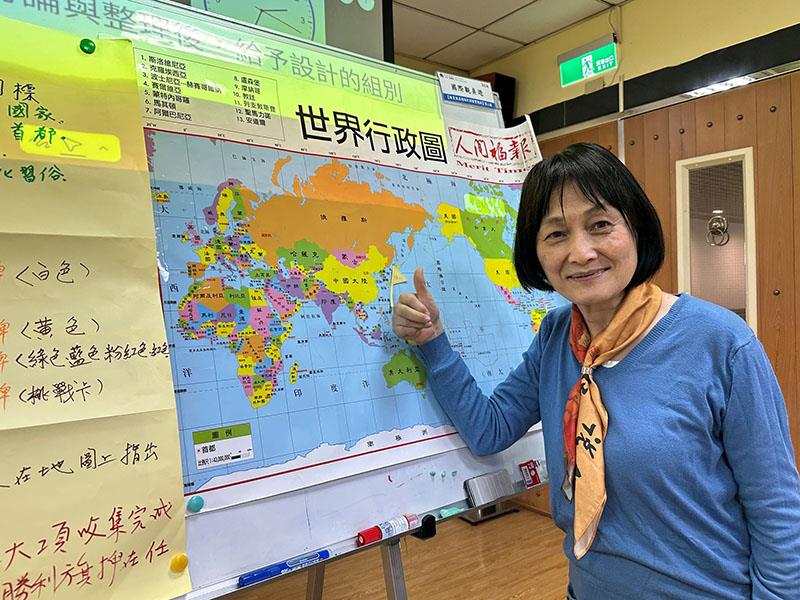 圖06.南華大學終身學院「教育版桌遊設計開發實戰班」第二期,熱心招生的人間福報讀報教育中心主任劉秀勤,在國際觀組提供的桌遊試玩中取得第一名。
