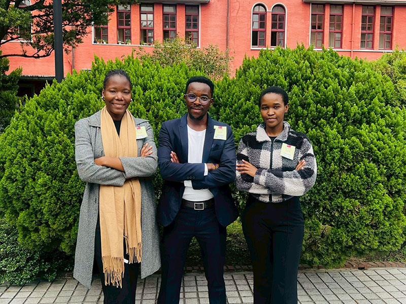 圖02.南華大學國際生受邀出席「全球國際交流合作・共榮共融」活動,分享返鄉實踐永續行動。左起馬拉威籍沐語彤、坦尚尼亞籍麥可、史瓦帝尼籍藍安淇。