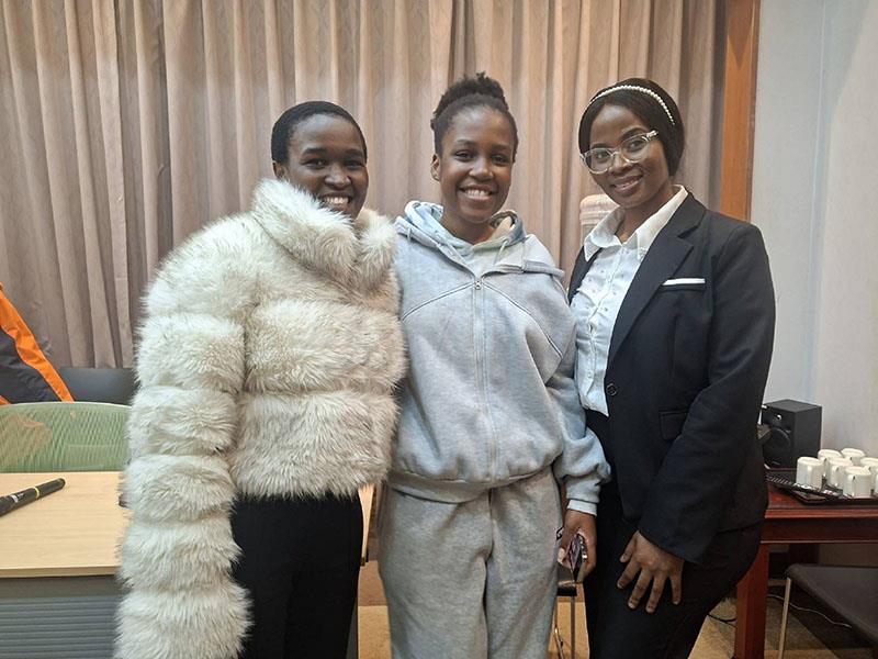 圖05.南華大學國際生史瓦帝尼籍藍安淇(左)受邀出席「全球國際交流合作・共榮共融」國際交流記者會,並與友校同鄉史瓦帝尼籍學生合影。