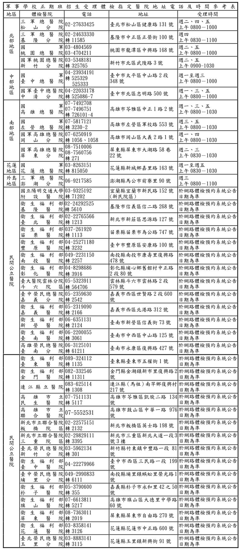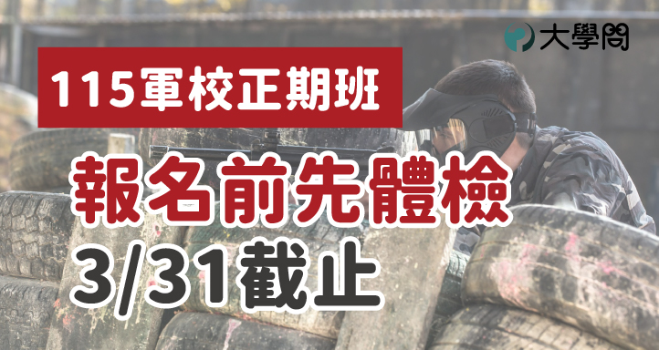 想要報考115年「軍校正期班」的同學,在正式報名前請記得要先去預約體檢,合格者才可以網路報名喔。有意報考軍校的同學,請先上網至「國軍人才招募中心」,從「國軍招募服務」點選「預約體檢」,進入「國軍招募班隊體檢預約系統」,先線上預約後,再到指定醫院體檢。