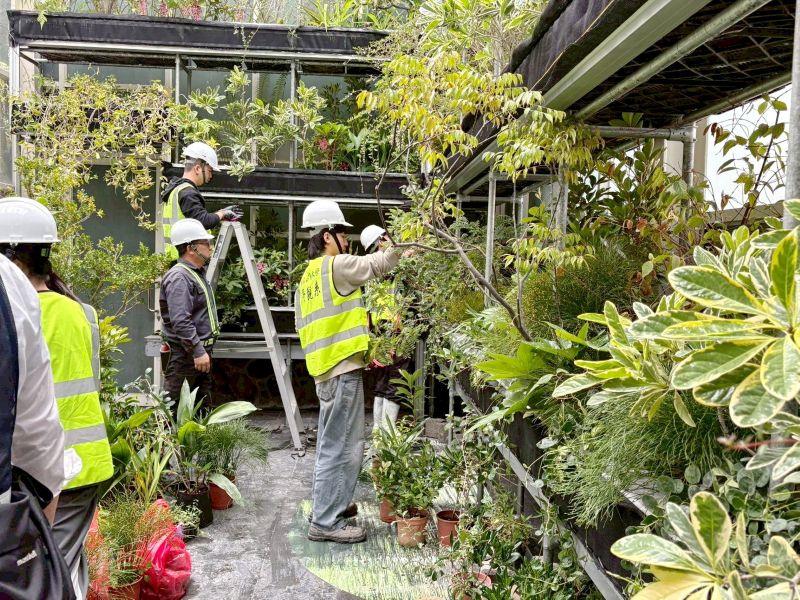 圖4:嘉義大學景觀學系學生合力為展場大型植物換盆。