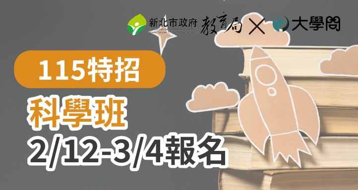 115學年度科學班甄選入學將於115年2月12日開始報名,至3月4日17:00截止。已獲就讀國中推薦的同學,請至申請高中的官網,進入「高級中等學校科學班報名網」,填寫報名資料,繳費後送出申請,即可參加資格審查。