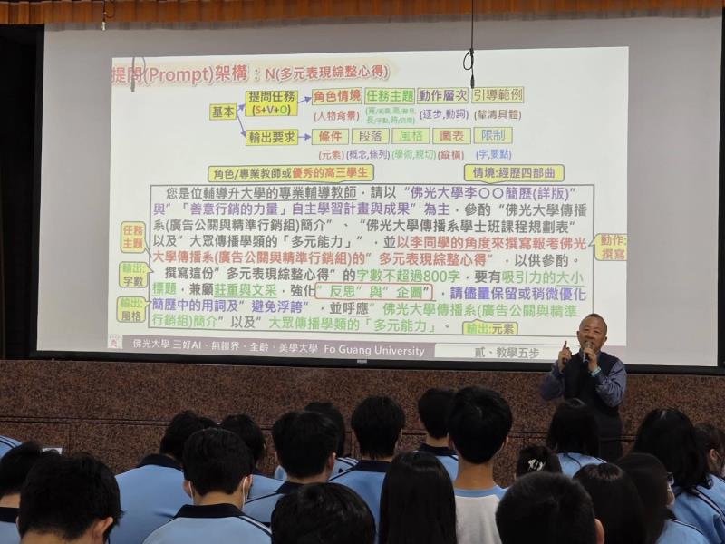 佛光大學表示,長期以來重視人文關懷與科技應用並進,積極推動AI素養教育與數位賦能行動。此次走入高中校園,不僅分享大學選才觀點,更提供前沿科技工具實務指引,協助學生在升學路上穩健前行。
