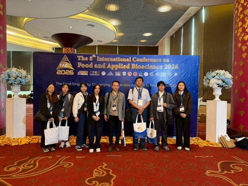 為接軌國際學術脈動並落實人才培育,嘉義大學食品科學系展現豐沛研發能量,在教育部高等教育深耕計畫「教師教學與學生學習國際交流補助」計畫支持下,食科系呂英震主任與許志宇助理教授帶領六位優秀學生,赴泰國參加由清邁大學(Chiang Mai University)舉辦的「2026 第八屆國際食品及應用科學研討會(The 8th International Conference on Food and Applied Sciences)」,與來自全球的學者進行深度交流。