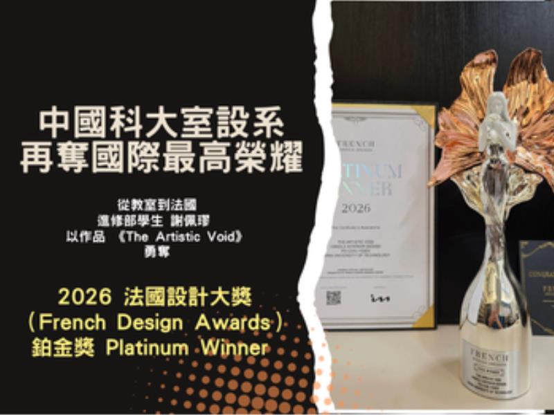 中國科技大學室內設計系進修部學生謝佩璆憑藉作品《The Artistic Void》,榮獲2026法國設計大獎(French Design Awards)室內設計類鉑金獎(Platinum Winner),為該系在國際舞台再創佳績。 法國設計大獎(French Design Awards)由 International Awards Associate(IAA)主辦,為全球重要設計競賽之一,涵蓋室內設計、建築設計、產品設計與包裝設計等領域,旨在表彰具創新思維與卓越表現的設計人才。該獎項評選嚴謹,強調設計在空間敘事、美學創造與生活機能整合上的整體表現。 獲獎作品《The Artistic Void》以「形與空的對話」為核心概念,透過材質運用與動線安排,重新詮釋住宅空間的可能性,將日常生活場域轉化為富含藝術氛圍的居住空間。 設計自入口玄關鋪陳,規劃專屬除塵區,展現細膩的生活思維;一面氣勢沉穩的石材主牆成為視覺焦點,天然紋理如水墨般流動,營造靜謐而深邃的空間意象。客廳區域透過大尺度石材電視主牆與木質天花板相互呼應,並以流暢弧線延伸視覺層次,使整體空間更顯開闊與連貫。 餐廳位於住宅核心位置,深色木質長桌搭配圓形吊燈,構築穩定而富節奏感的視覺構圖。展示櫃體與嵌入式燈光設計,使藝術收藏自然融入日常生活,在機能與美感之間取得精準平衡。 回顧參賽歷程,中國科大室設系進修部學生謝佩璆坦言,這一年對她而言別具意義。在親友與師長鼓勵下,她選擇重返校園進修,重新以學生身分投入學習,深化專業理論基礎。同時,在該系陳鼎周系主任的支持與鼓勵下,首度挑戰國際設計競賽,為多年深耕的設計實務寫下嶄新篇章。 謝佩璆笑言,古人說十年磨一劍,30年的累積,是對專業最踏實的交代。此次獲得國際鉑金獎肯定,不僅象徵個人設計實力獲得專業認證,也為長期信任她的業主與合作夥伴增添信心。未來,謝佩璆規劃持續進修中國科大碩士學位,深化設計理論與研究能力,期盼將實務經驗與學術能量結合,創造更具深度與溫度的空間作品。 中國科技大學室內設計系長期重視產學結合與國際視野培養,積極鼓勵學生參與國際競賽與專業交流。此次榮獲鉑金獎殊榮,不僅彰顯學生卓越設計實力,更展現系所深厚教學成果與國際競爭力。在新春佳節之際,這份來自法國的肯定,為該系師生注入嶄新動能,也象徵設計教育持續向前、穩健拓展國際舞台的堅定步伐。