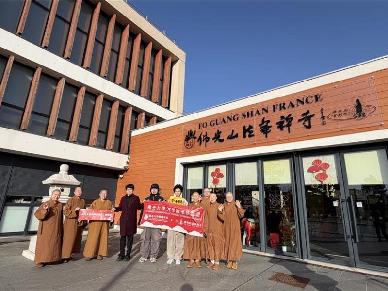 佛光山佛光大學2名實習生、3名學生義工,今年寒假前往法國巴黎法華禪寺展開海外實習與義工服務。適逢春節活動最繁忙時期,學生結合傳播、設計與心理專長投入道場運作,以行動實踐「三好四給」理念,展現青年世代的國際行動力。