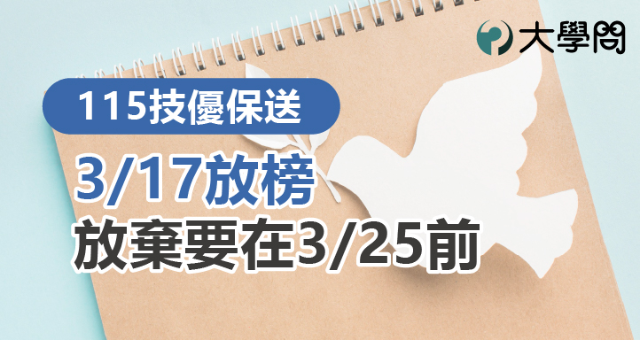 115學年度「技優保送」的分發結果將於115年3月17日上午10點起公告於「技專校院招生委員會聯合會-技優入學」網站上。考生進入後請點選的「技優保送作業系統」,選擇「分發放榜」,即可查詢。