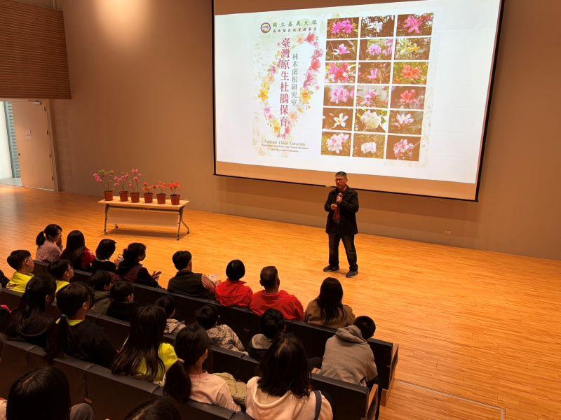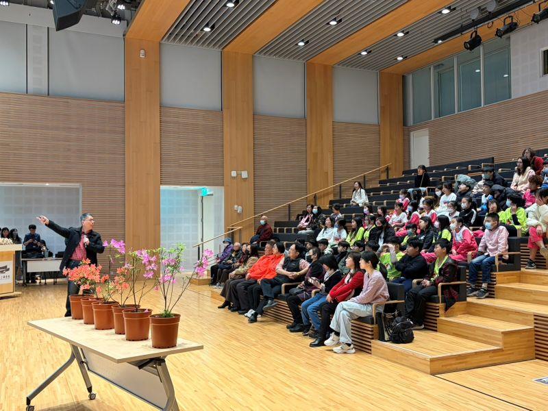 活動首先在桃園市立圖書館微光廳舉辦「臺灣原生杜鵑保育講座」,由嘉大森林系林瑞進教授分享臺灣原生杜鵑的種類、生長環境與保育意義,帶領學童認識臺灣豐富的植物多樣性,以及原生植物在生態系中的重要角色,林教授表示:「保育臺灣原生杜鵑是我們的重要使命,而維護其基因多樣性更是核心關鍵,期盼凝聚國人的力量,讓臺灣原生杜鵑在這片土地上永續綻放。」