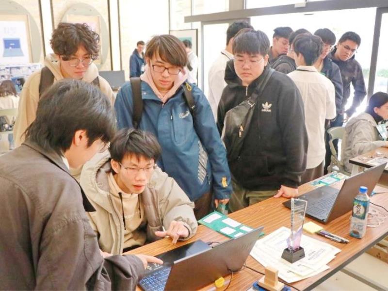 圖6:學生於攤位前實際操作展示系統並進行討論與交流,增進學習的互動性與參與度。