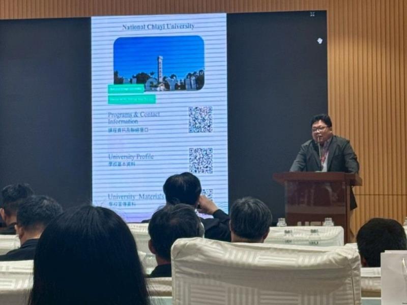 圖3:嘉大國際處國際交流組陳宣汶組長向參與台越教育招生交流的越南師生介紹嘉大特色與優勢。