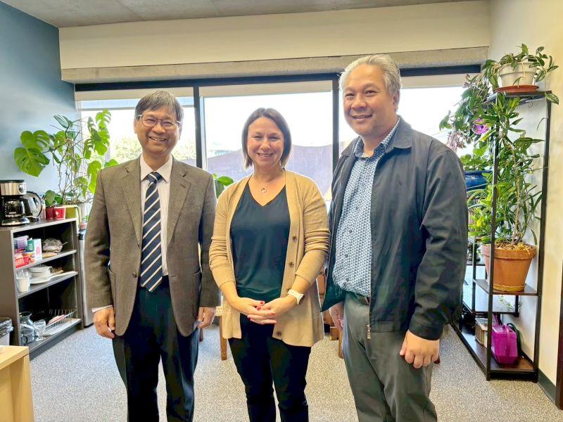 圖1:張俊賢教授拜訪加拿大萊斯布里奇大學藝術學院院長Dr. Davis-Fisch Heather(中)及國際長Prof. Paul_Pan(右)。