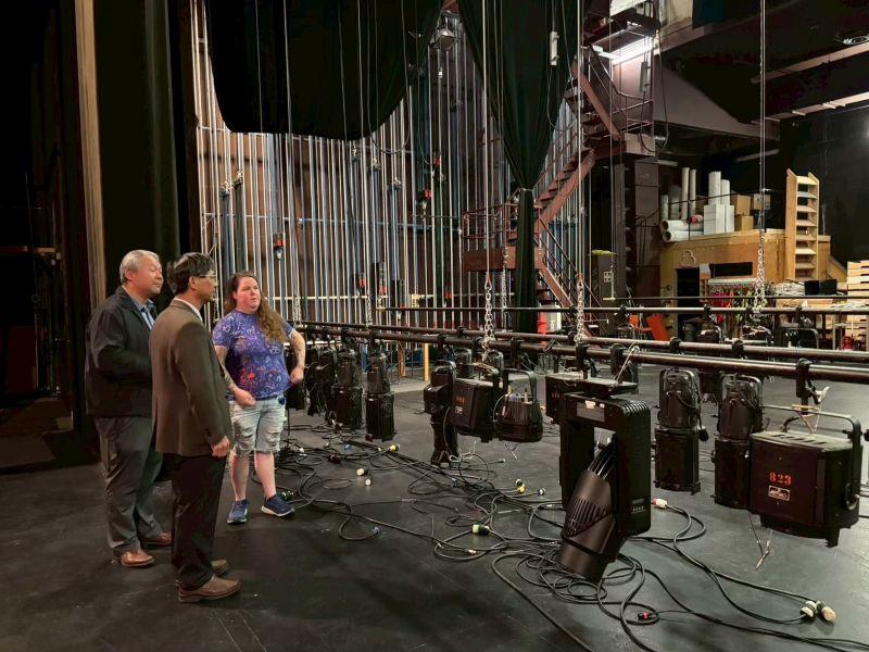 圖2:張俊賢教授在萊斯布里奇大學藝術學院教職員陪同下參觀該學院展演廳設施設備。