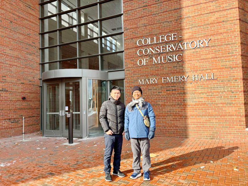 圖7:張俊賢教授與音樂系陳上義校友在辛辛那提大學音樂學院音樂系前合影。