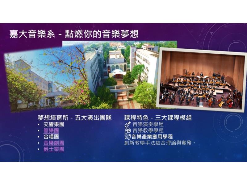 圖1:嘉義大學音樂學系-點燃您的音樂夢想。