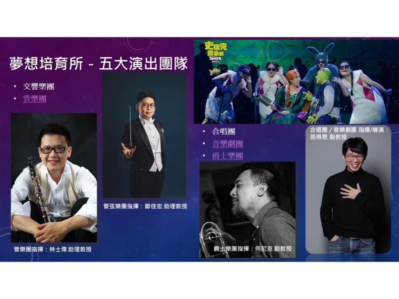 圖2:嘉義大學音樂學系五大演出團隊-是您的夢想培育所。