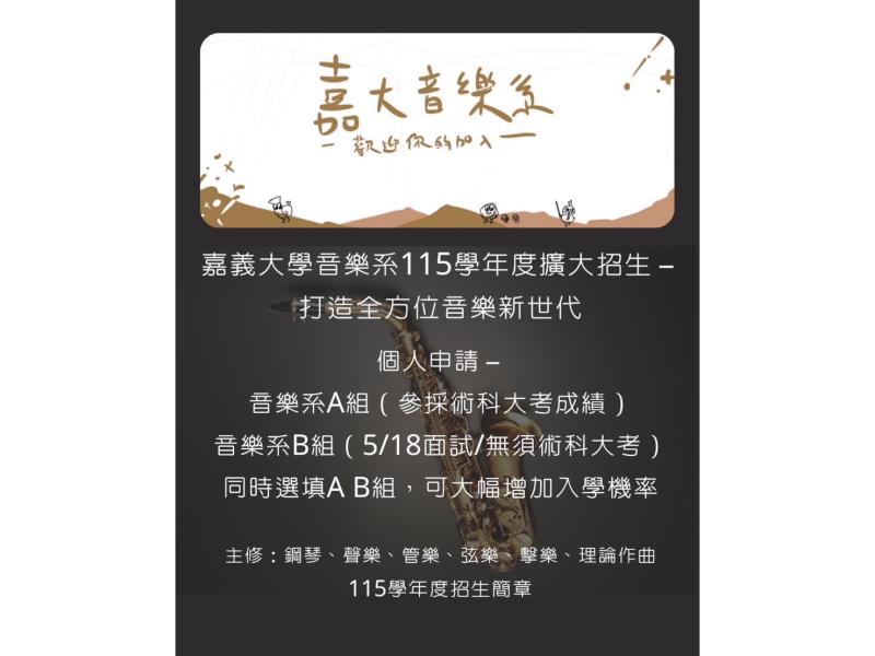 圖4:嘉大音樂系115學年度個人申請入學招生資訊。