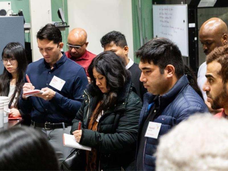 圖1:嘉大資管系碩士生蔡亞洳(前排左一)與美國9所大學MBA參賽隊伍於賽前了解Rise Energy生質能源新創公司營運情形,以提出完整的商業策略建議。