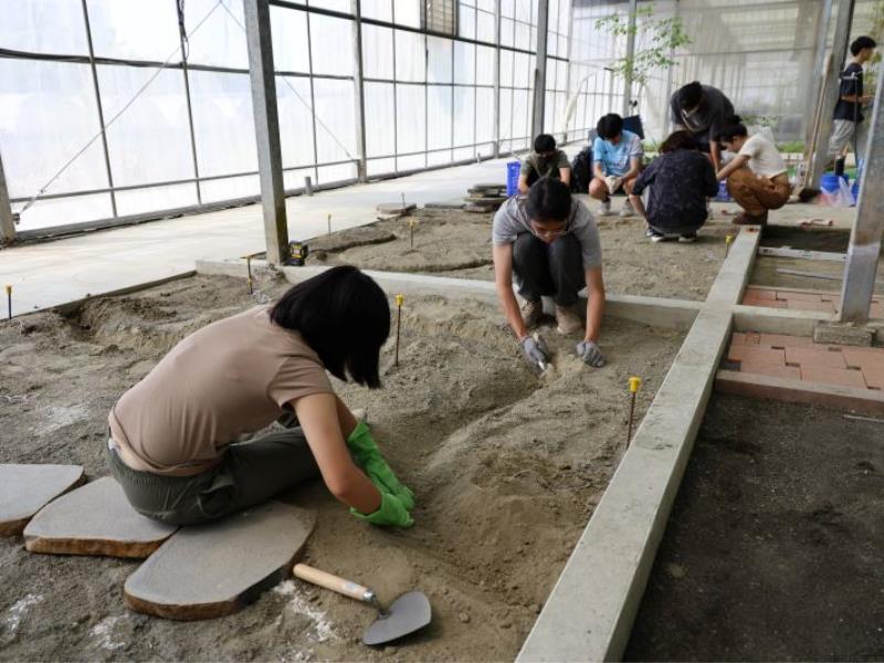 林翰謙校長表示,隨著AI與智慧科技快速發展,設計規劃與資料分析可透過數位工具完成,但景觀施工與植物應用等專業,仍需透過實際操作與經驗累積;造園景觀實作場的建置,能強化學生在真實場域中的整合與實務判斷能力,在AI時代中培養具備不可替代性的專業技藝人才。農學院江彥政副院長表示,造園景觀實作場的啟用,不僅完善學院實務教學環境,也讓學生在學習過程中累積實作經驗,強化與產業的連結。景觀學系陳佩君助理教授則指出,透過實作場的學習環境,讓學生在設計之外,也能實際參與景觀施工流程與植物栽植管理等操作練習,學生能更理解從規劃到落實的完整過程,提升未來進入產業後的專業競爭力。