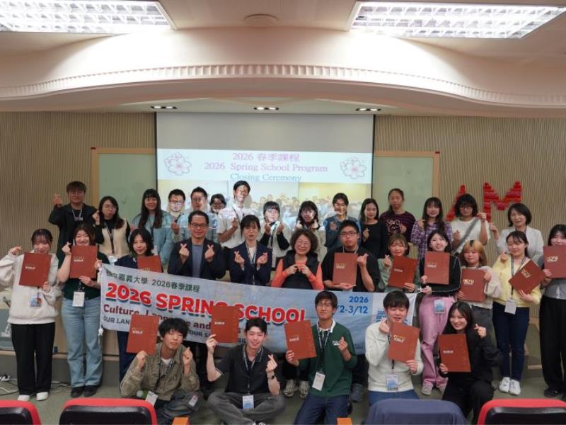 本次春季課程以「土地與飲食文化」為主軸,學員於結業式中以「春季課程研修心得:我對永續發展目標(SDGs)的觀察與洞見(My Insights into SDGs from the Spring School Program)」為題進行專題分享。透過實地走訪與感官體驗,學員各自表達對於華語課程、文化資產保存、校園儲水循環系統、中草藥綠色萃取技術,以及在地產業展現「責任生產與消費」行動等的深刻感觸,並能從跨文化角度進行思辨,也高度肯定嘉大將特色課程及在地產業推動永續發展緊密結合的努力。許多學員表示,返校後將推薦學弟妹參與明年度嘉大春季課程,並期待未來能以交換生身分再訪嘉大。