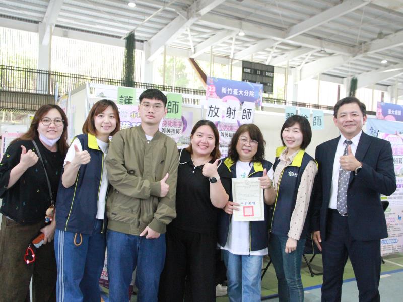 臺大醫院新竹臺大分院多位元培校友,返校參與元培2026就業博覽會徵才,王綮慷校長(右一)特別表達謝意。