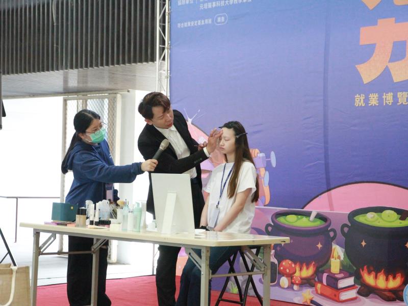 元培2026就業博覽會設置彩妝體驗專區,協助學生打造合適的面試妝容。_0