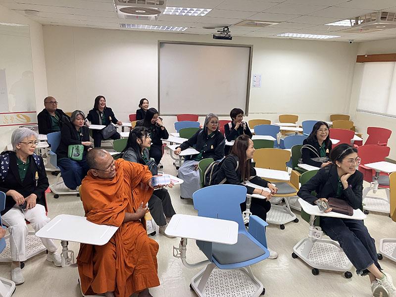 活動中兩校除透過簡介與交流深化合作關係,南華大學特別安排校園導覽,帶領來訪的泰國師生參訪圖書館及e學苑學習空間,藉以了解南華教學環境與數位學習資源。此外,參訪團亦前往百萬人興學紀念館體驗禮佛與抄經活動,感受南華大學融合佛教人文精神與生命教育理念的校園文化。