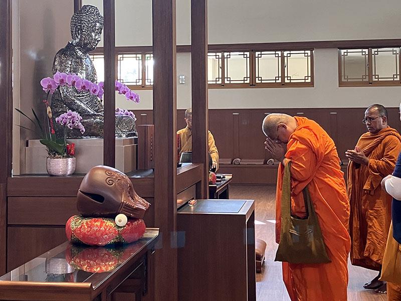 圖04.南華大學安排泰國摩訶朱拉隆功大學參訪團參觀百萬人興學紀念館禪堂,並進行禮佛。