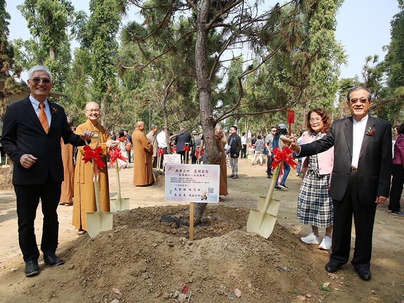 南華大學校慶活動首先登場的是「百年樹人・永續南華」植樹活動,此次植樹美事的促成,源於施茂林前部長對星雲大師人間佛教理念的深刻嚮往與景仰,特別號召多位社會賢達,以父母之名共同捐贈百株黑松,將感恩之情轉化為校園永續綠意。該校董事長心保和尚領銜貴賓們,共同種下一百三十株黑松,象徵「大師百年」與「南華三十」之圓滿交會與永續傳承之寓意。