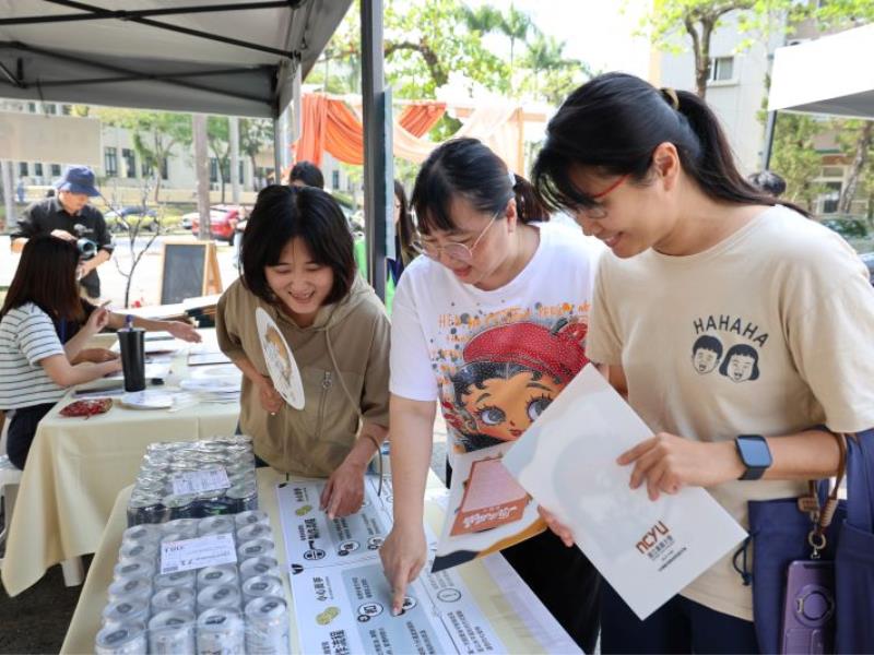 3月25日於蘭潭校區國際交流學園舉辦開幕活動,設置28個主題式互動攤位,涵蓋人文藝術、原住民文化、智慧農業、科學教育、生態永續、健康促進及數位創新等多元領域。活動強調「看得見、玩得到、帶得走」,讓參與者透過風力發電模組操作、天然防蚊液製作、生態槌染、玉石研磨及手沖咖啡等DIY體驗,在「做中學」的過程中,將抽象知識轉化為有感的生活經驗。