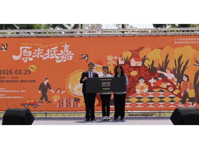 嘉義大學於3月25日高教深耕計畫「原來抵嘉」成果展主場活動中,同步舉辦「2026 SDGs永續發展創新創業競賽」頒獎典禮,表揚學生團隊在永續發展與社會創新領域的傑出表現。本次競賽由永續發展暨社會責任辦公室與產學營運及推廣處產學創育推廣中心共同辦理,並以聯合國永續發展目標(SDGs)為核心,鼓勵學生跨域整合專業,提出具體可行的創新解決方案,展現嘉大培育實作力與社會責任的教學成果。