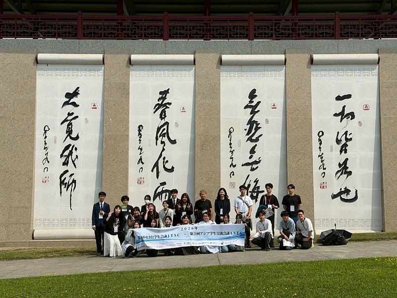 圖04.南華大學舉辦亞洲學生交流會議,日本學生於南華大學中道樓合影留念,展現跨國青年交流的豐碩成果。