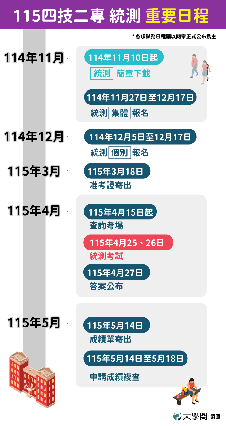 原則上,報名「統測」並無資格限制,只要符合四技科大或二專各入學管道的招生對象資格即可報考。