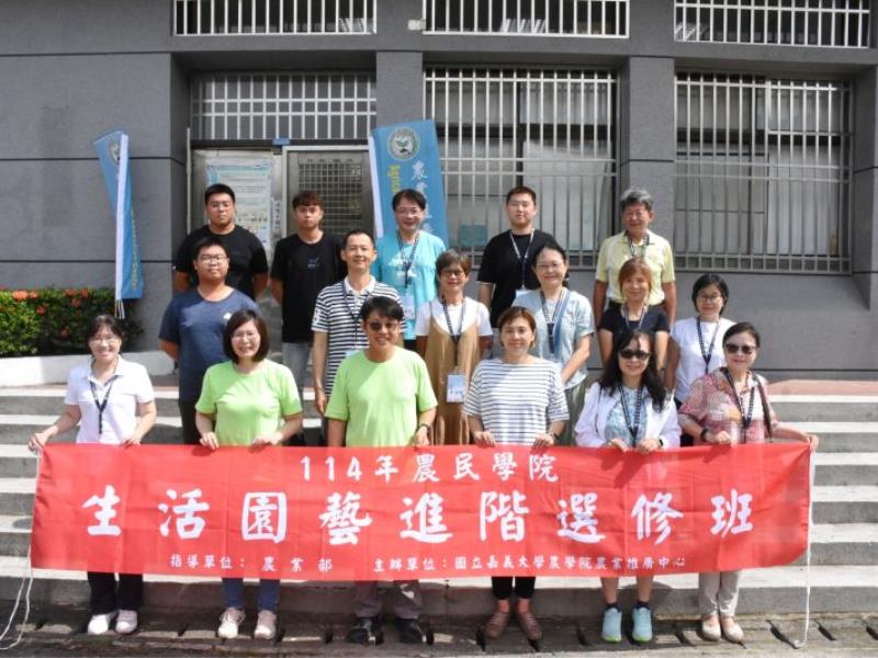 嘉義大學農業推廣中心與園藝學系共同主辦之農民學院「生活園藝」進階選修課程,7月14日至16日在蘭潭校區舉辦,吸引來自臺北、宜蘭、桃園、臺東及屏東等地共16位學員參與,展現園藝學習的高度熱情與跨地域影響力。課程內容豐富多元,學員紛紛表示「收穫滿滿,太值得了!」