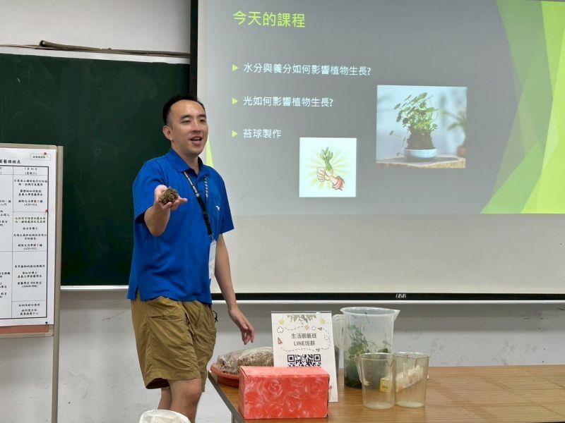 圖2.農藝學系林孟淳助理教授介紹水苔球實作。