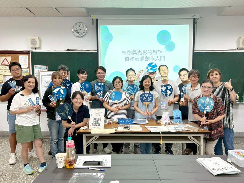 圖3.全體學員手持個人創作藍晒作品合影。