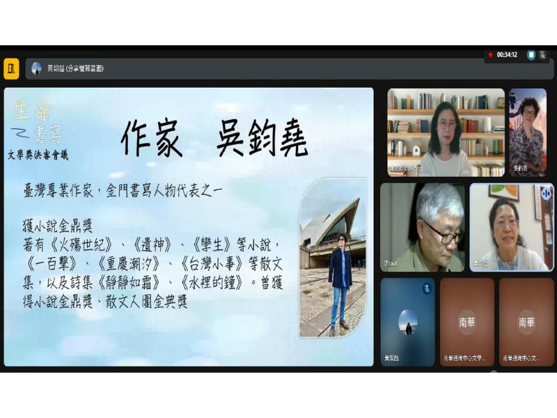 南華大學舉辦生命書寫文學獎決審會議,邀請作家吳鈞堯老師擔任評審。