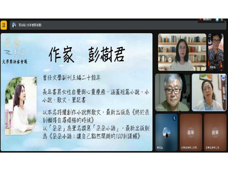 南華大學舉辦生命書寫文學獎決審會議,邀請作家彭樹君老師擔任評審。