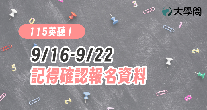 / 情報 / 大學考情 / 【115英聽 I】9/16-9/22記得確認報名資料