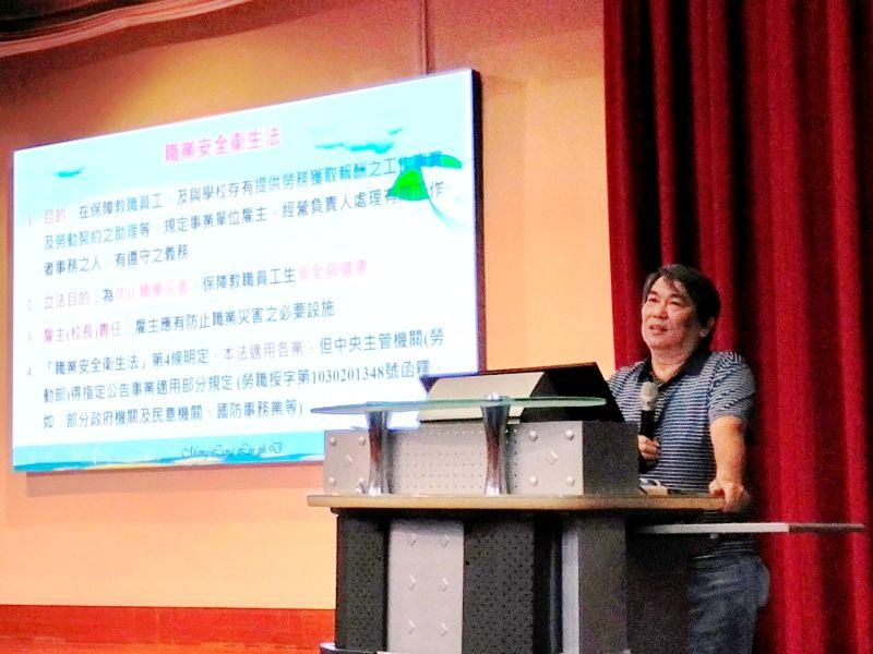 圖2:中山醫學大學職業安全衛生學系林孟龍助理教授主講校園職業安全衛生概論。