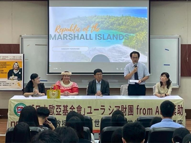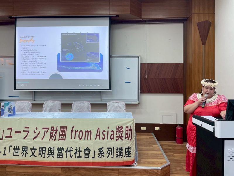 圖2:馬紹爾大使卡蒂爾專題講座:「現代的挑戰:從馬紹爾歷史文化談永續發展」。